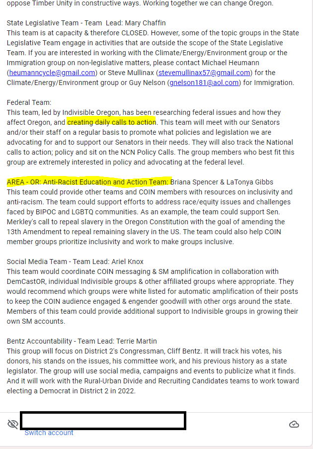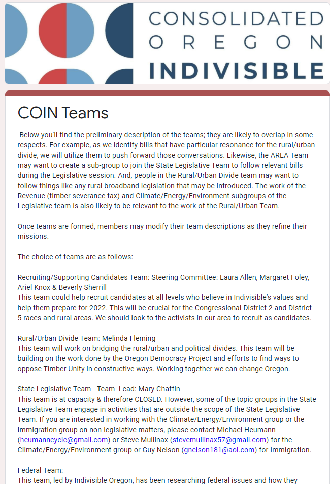 It is beyond my ability to unravel the full network of relationships between Indivisible organizations, Antifa cells and Democrat politicians in the state of Oregon. As an independent journalist I am greatly limited by time and money. The information I have shared over the years on the Yamhill Advocate website took many years to acquire and piece together, and monetary expenses such as public records requests numbering in the tens of thousands of dollars. I believe it will take the resources of federal investigators to weed through the lies and corruption in Oregon but at the root of it I am confident you will find the information necessary to dismantle Antifa.
