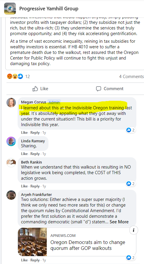 Naturally this is unsurprising given Progressive Yamhill is listed as a registered chapter of Indivisible on its website,